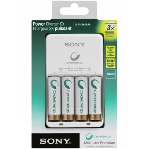 Cargador de pilas sony bcg-34hh4kn p/pilas 2a/3a + 4 pilas aa pre cargadas 2100 mah
